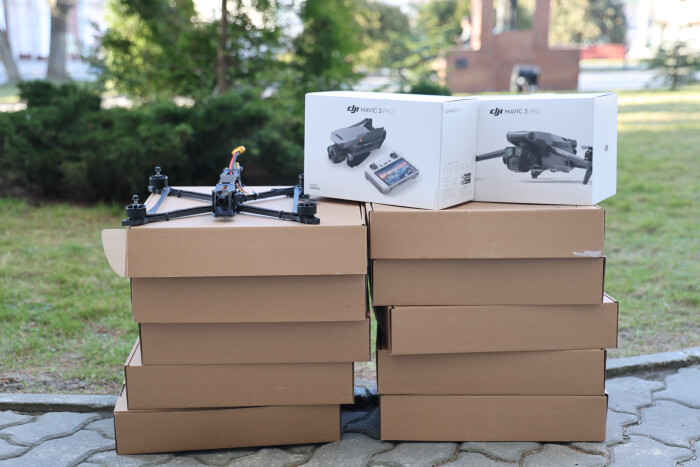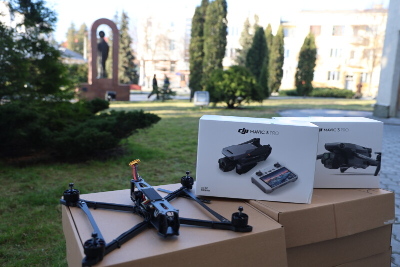 10 FPV-дронів та два квадрокоптери DJI Mavic 3 Pro передано для військової частини А 4945.