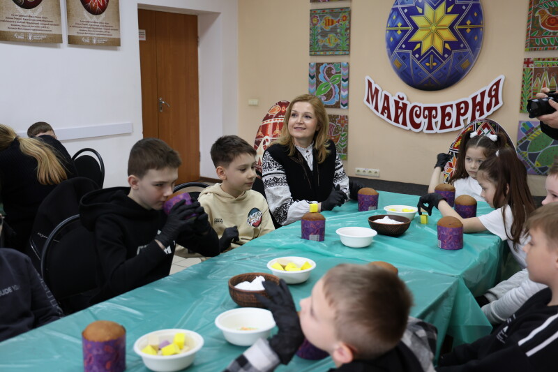 «Наших майстрів і всіх вас, діти, я хочу привітати з прийдешнім Великоднем. Нехай це світле свято, яке дарує нам надію, принесе перемогу, мир і щасливе майбутнє. Кожному з вас я бажаю тих позитивних емоцій, які повинні мати діти. Щоб ваше майбутнє було щасливим і веселим. Тому що те, що сьогодні відбувається в нашій країні, коли ми відстоюємо свою незалежність, воно відбувається заради вас», — сказала Ірина Чебелюк.