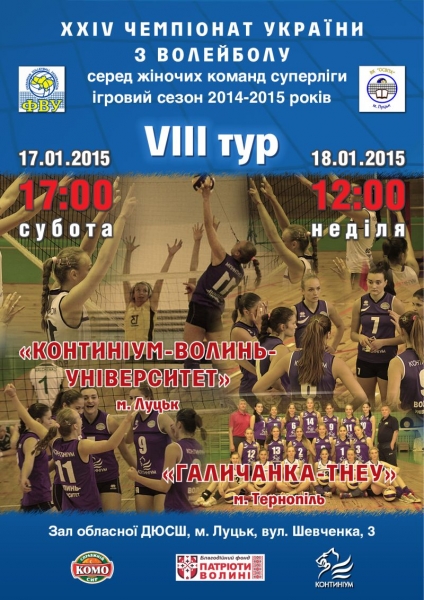 Отож, запрошуємо всіх палких любителів спорту і волейболу зокрема прийти і підтримати наших дівчат у поєдинку чергового туру ХХІV чемпіонату України з волейболу серед жіночих команд суперліги ігрового сезону 2014-2015 років.